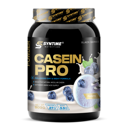 Казеин - это сложный белок, как же он работает? Попадая в желудок казеин начинает медленно усваиваться и медленно отдает в кровоток питательные вещества и аминокислоты в течение длительного периода?; Это позволяет более длительное время поддерживать синтез белка после тренировки и дольше чувствовать сытость; Период усвоения казеина в среднем занимает 6;1;грамма на 1 час времени, что в среднем равняется усвоению полной порции белка 5 часам; Именно для утоления голода, лучшего восстановления ночью ,казеин и принимают на ужин; Казеин от Syntime Nutrition - является высококачественным белком без бесполезных примесей, содержит в своем составе только природные ароматизаторы, подсластитель сукралозу, сублимированные в зависимости от вкуса: клубнику, шоколад и чернику;