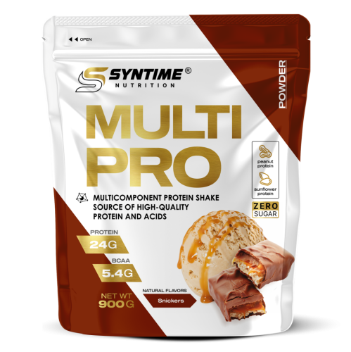 Представляем вашему вниманию мультикомпонентный протеин от Syntime Nutrition Мультикомпонентный протеин известен своей универсальностью, в таких протеинах содержится целый набор различных протеинов, Multi Pro не является исключением В составе содержаться: 1)Сывороточный концентрат (дающий заряд аминокислот в короткий период наделяя энергией) 2)Мицеллярный казеин (который позволяет насыщать организм аминокислотами длительное время) 3)Белок арахиса, абрикоса и подсолнечника (в зависимости от вкуса) белок этих растений в отличии от соевого полезен как мужчинам, так и женщинам и обладает хорошей усвояемостью, а так же содержит полезные жиры и витамины, а его главная особенность антиоксидантное воздействие на организм Multi Pro от Syntime Nutrition прошел лабораторные испытания и полностью соответствует стандартам качества, в составе не содержатся ГМО продукты, консерванты усилители вкуса, сахар и используется только натуральные ингредиенты, как натуральные ароматизаторы и сукралоза